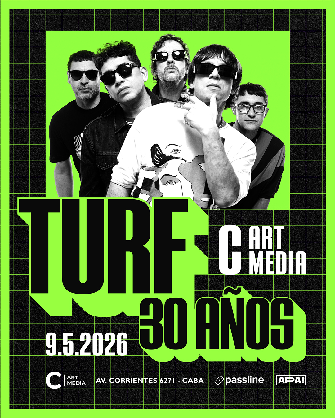 presentó además una serie de registros audiovisuales en vivo del show realizado el 15 de agosto en el teatro, material que refleja la potencia de su propuesta en directo y la conexión intacta con su público. Entre los lanzamientos que formaron parte de este proyecto, se encontraron “Casanova” junto a Santiago Motorizado y “Me Hace Sentir” con Miranda!, que alcanzaron gran repercusión en medios, redes sociales y plataformas de streaming, confirmando que su música sigue vigente. Turf arranca el 2026 en los escenarios con su presencia en el Cosquín Rock el 14 de febrero en Córdoba, un festival que ya los ha recibido en varias ocasiones, donde darán un show a puro rock. |
